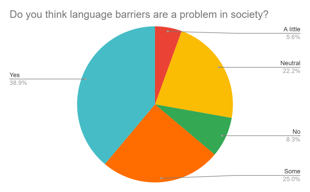 Graph 1: 69.5% of the people who were surveyed thought that language barriers were at least a small problem, while 30.5% were neutral, or thought they weren’t a problem.
